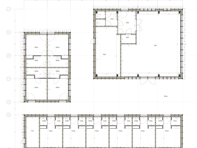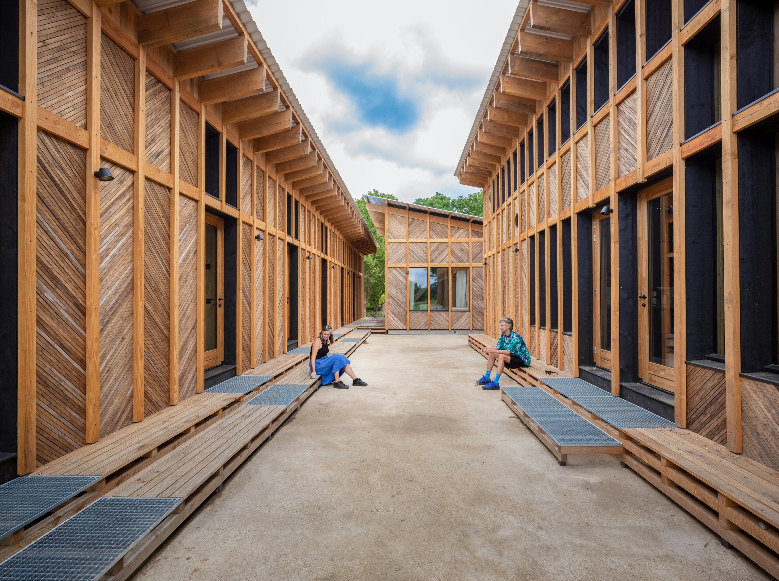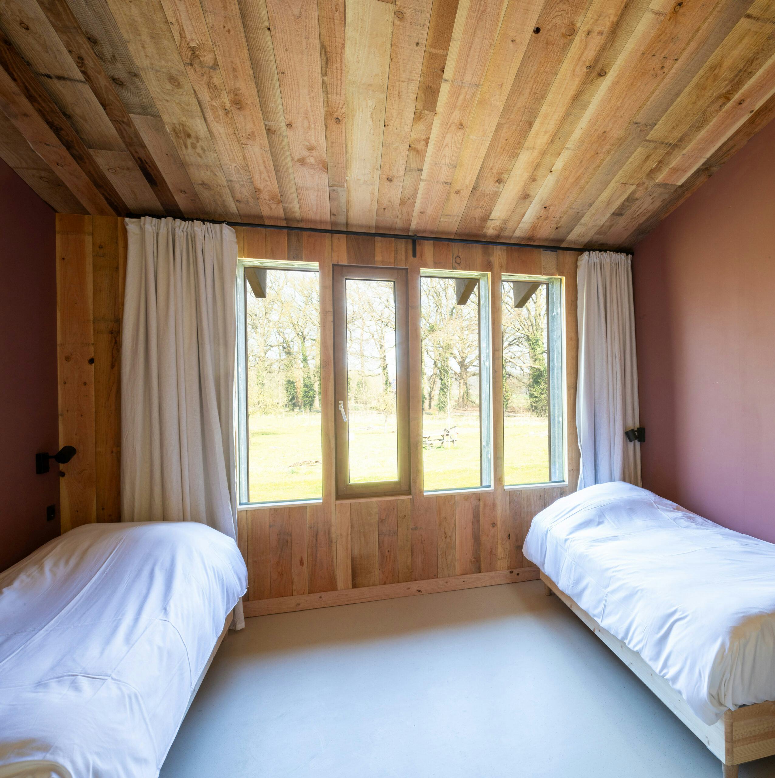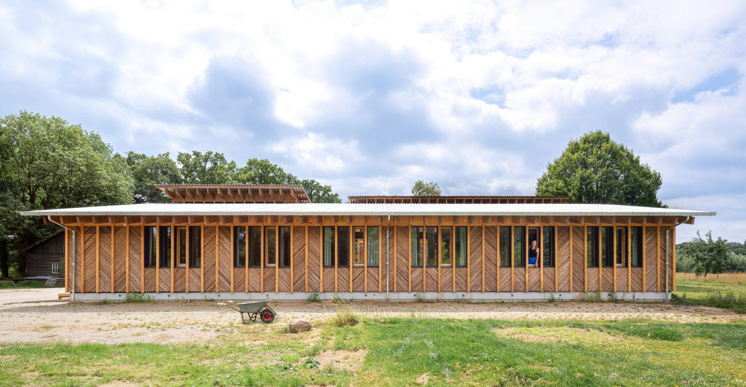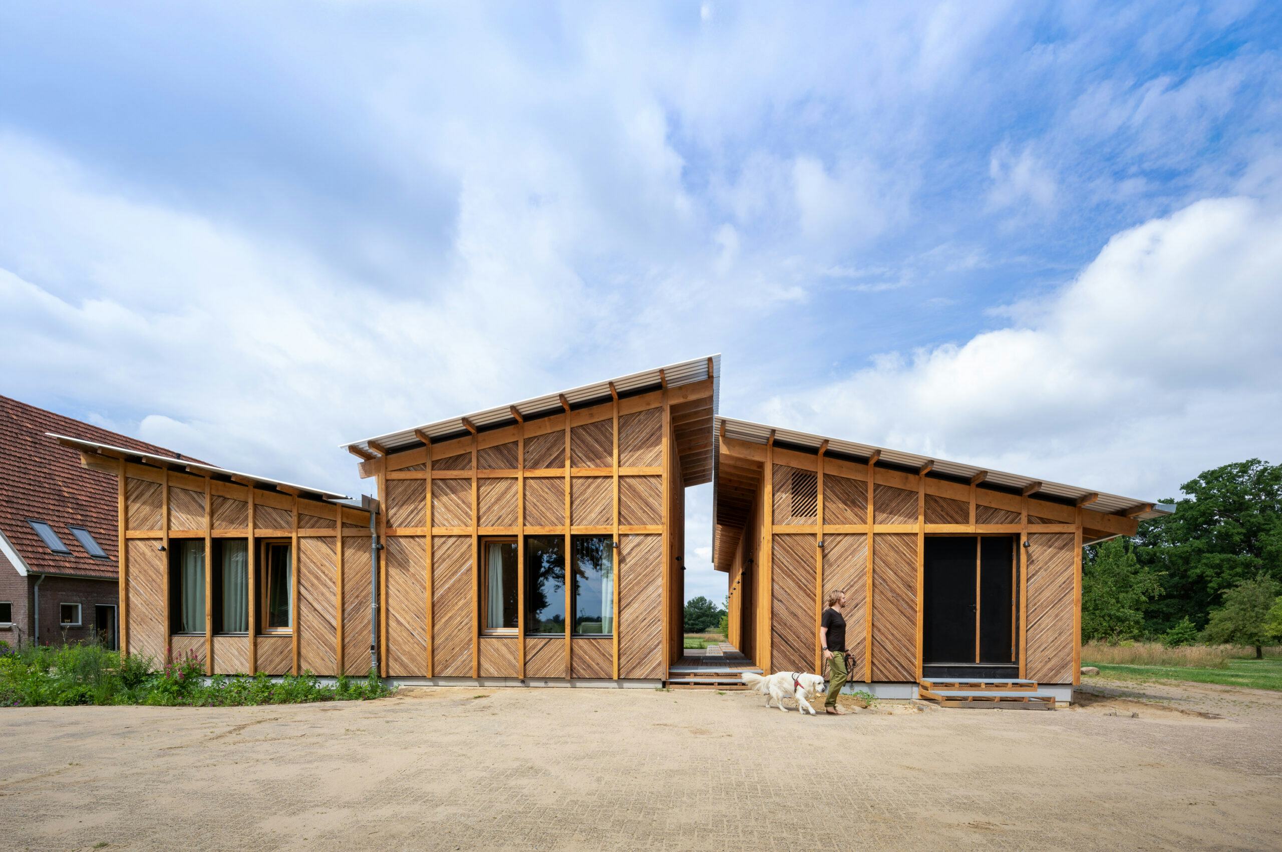 De drie afzonderlijke gebouwen, met in totaal tien gastenkamers en een eetzaal, zijn geplaatst op de bestaande fundering en volgen de contouren van de oude stal. Door de verdeling in drie volumes ontstond een open erfstructuur met uitzicht over het omliggende landschap en een gezamenlijk binnenplein.